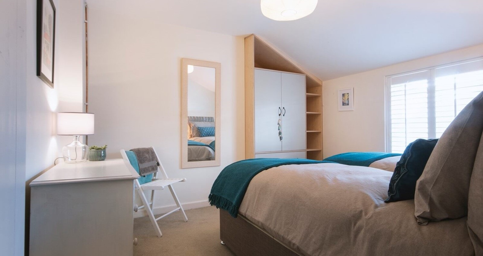 - Master Bedroom - Twin beds that can be arranged as a kingsize (upon request) bedside table with lamp, chest of drawers and wardrobe.