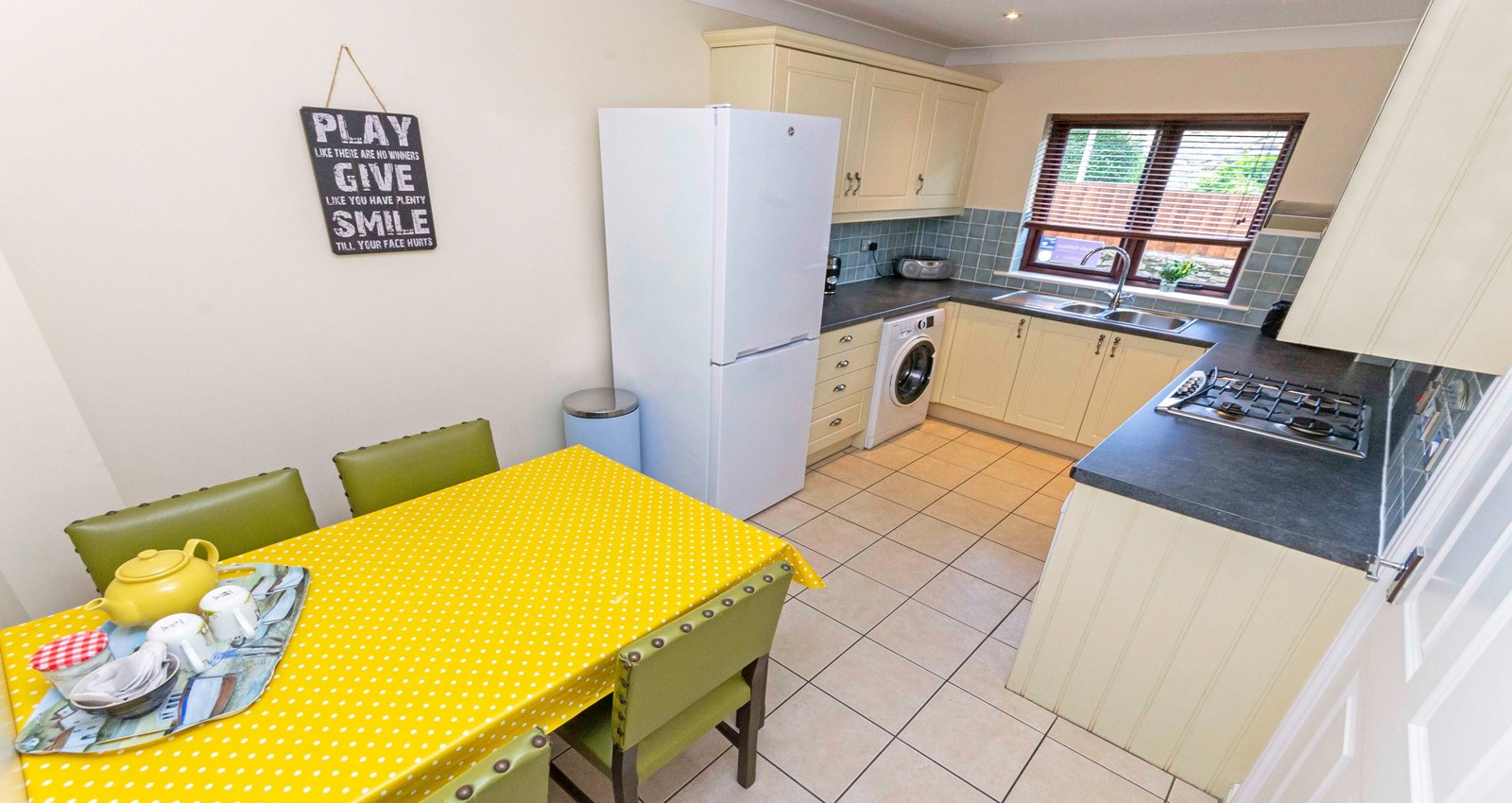The house was clean (apart from blinds) and tidy, location was good but parking was a problem as we had two cars (only one allocated parking space and two visitors parking spaces for 18 properties). Although dogs are allowed there is no grass within 200 yards of the property.