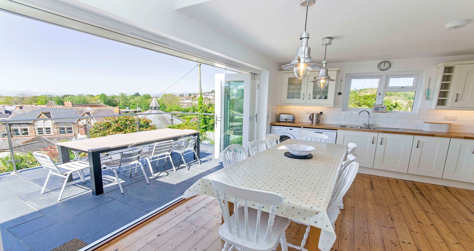 Rooftops is an amazingly well presented home, offering comfort and convenience for everyone. The kitchen has everything in it that you would at home - loved the Dualit Kettle and toaster! The bifold doors opening onto the patio make outside eating so easy - the deck becomes just an extension of the kitchen/diner. The upstairs bathroom has a shower and separate bath, which is deep and comfortable - always loads of hot water! The drive is fine if you approach it dead straight - have someone see you down if you are worried (we were in a BMW X3). Lots of room for parking and turning next to the house. The house keepers do a brilliant job in keeping it sparkly clean - thank you, one of the best rentals we've stayed in for a long while!