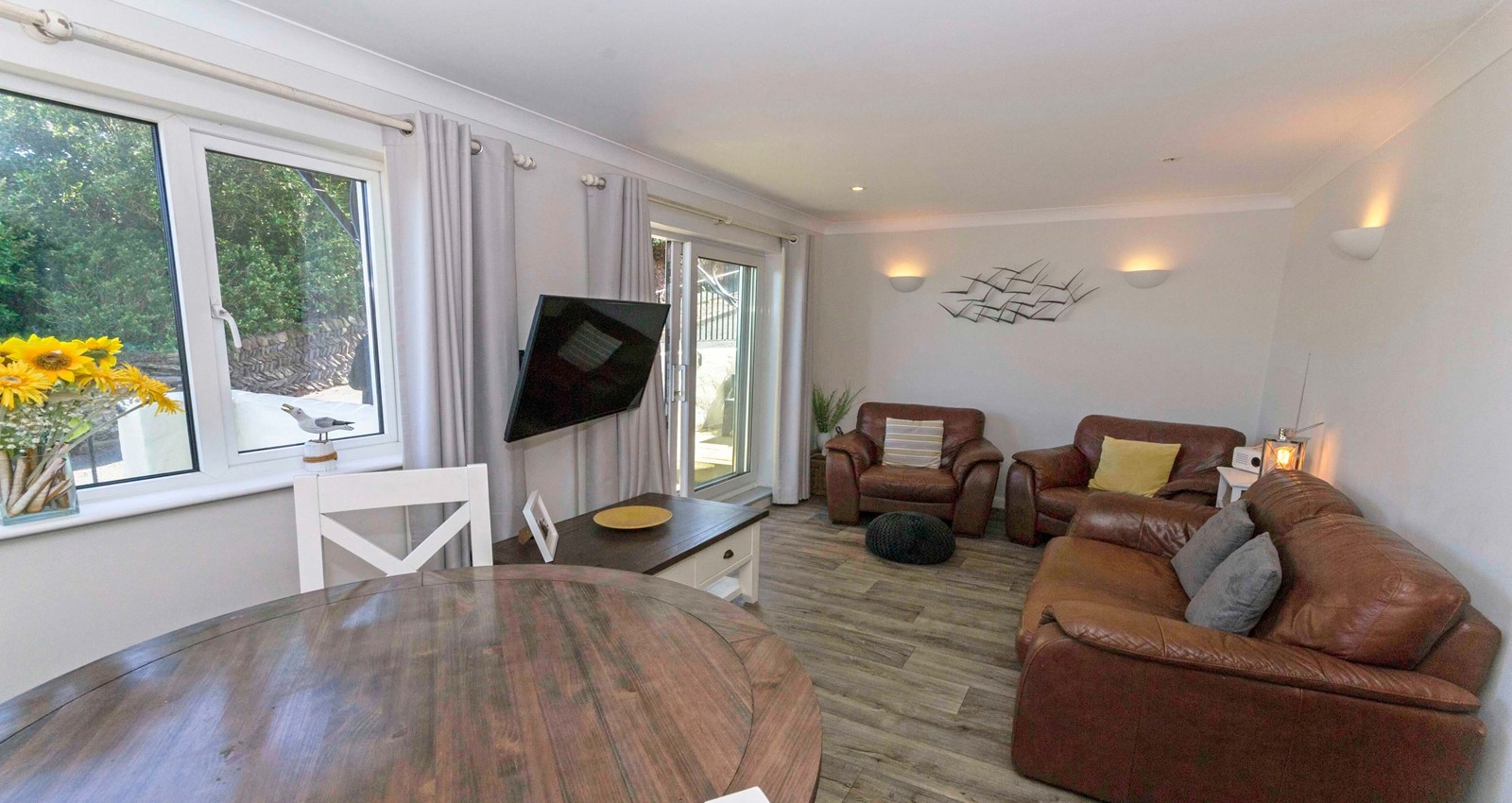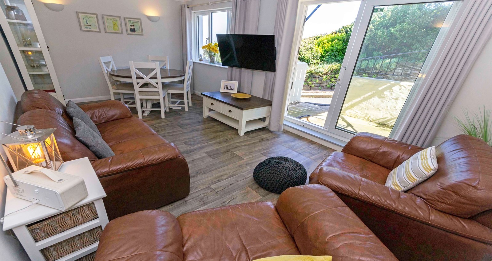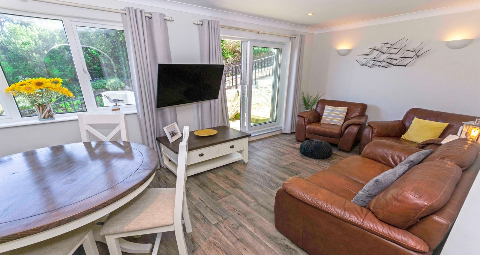 Open plan lounge diner includes; 2 comfortable brown leather sofas, coffee table, dining table to seat 4. Fantastic entertainment with wifi, large LCD TV with freeview, DVD player, CD player and selection of DVDs.