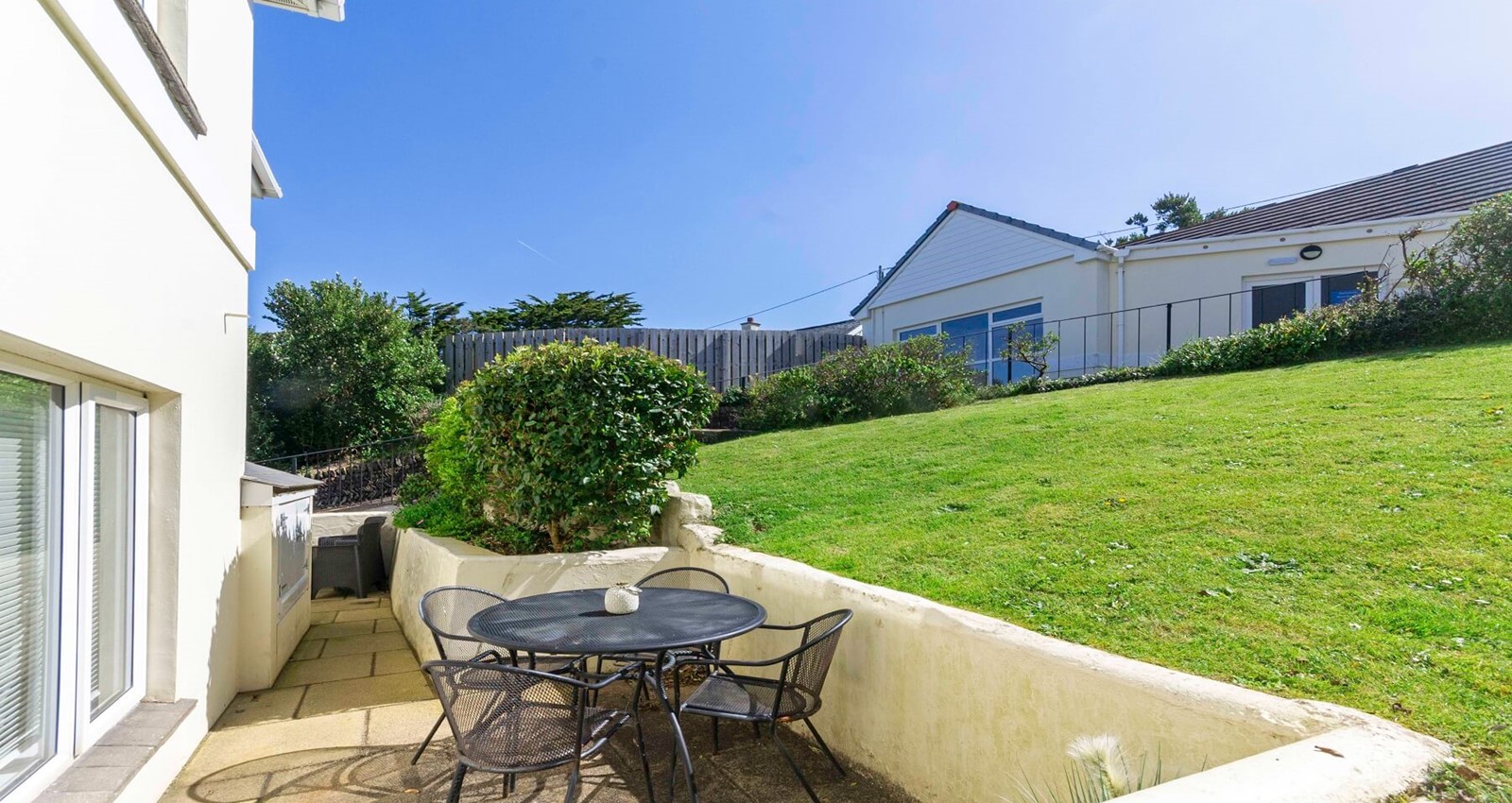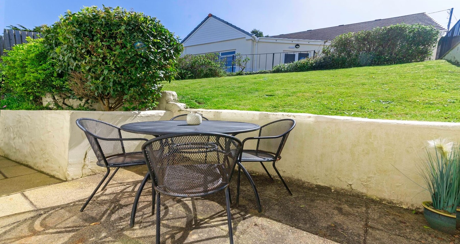 Patio doors provides access to the side and rear, with a private patio and bench which is the sole use of apartment 19.