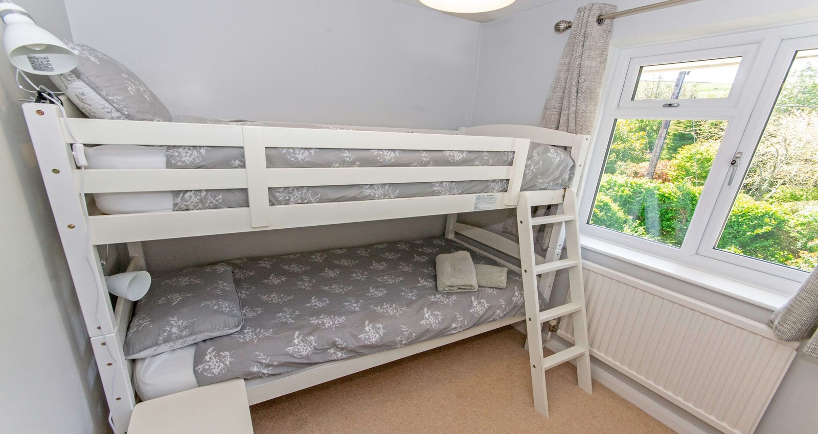 Bedroom Four: Bunk beds, chest of drawers, countryside views