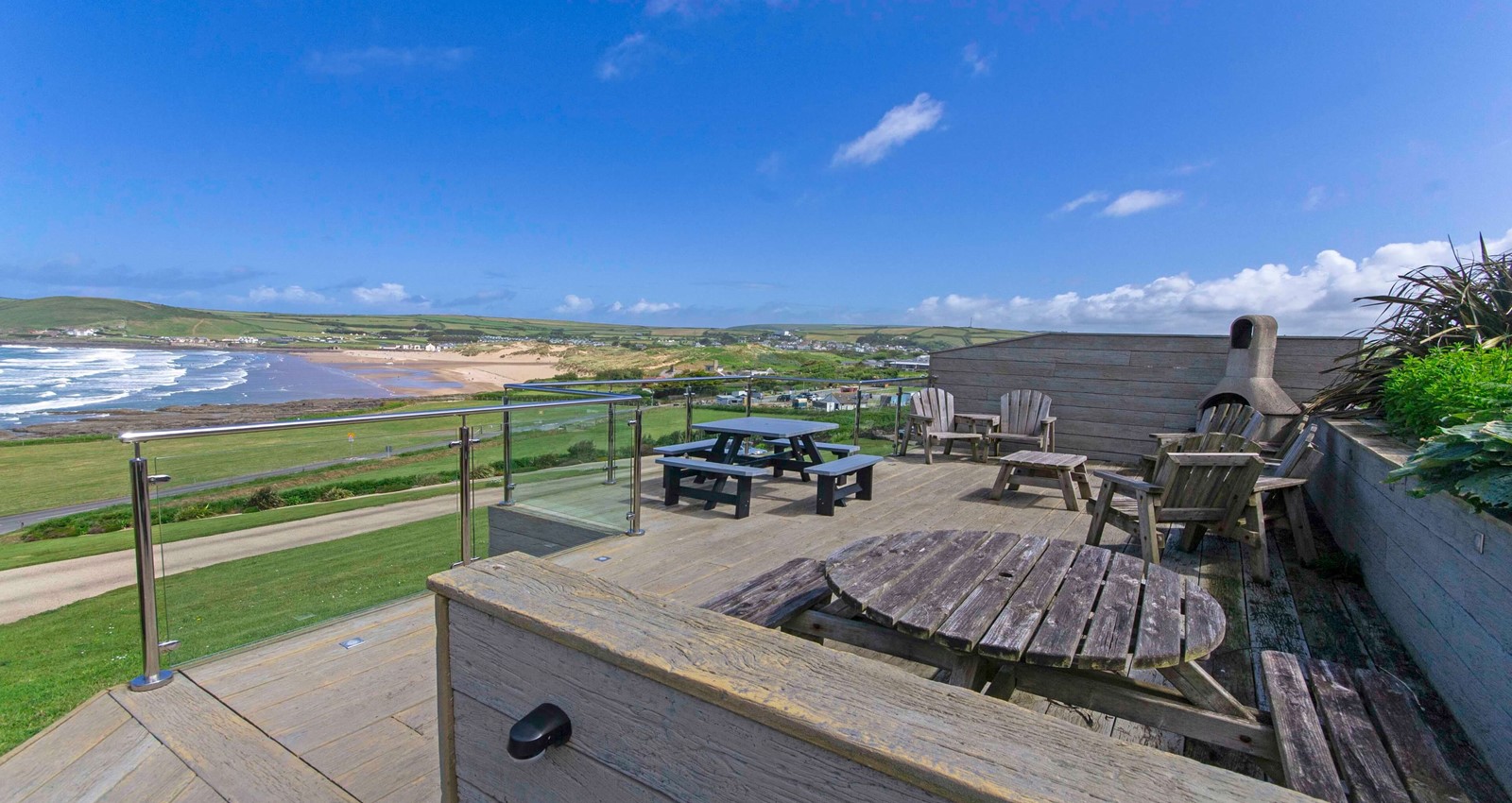 Externally; Laze around soaking up the coastal breeze on the decking area with sheltered glass screen and take in those splendid 180 degree views of Croyde beach, Baggy Point and toward Lundy Island.