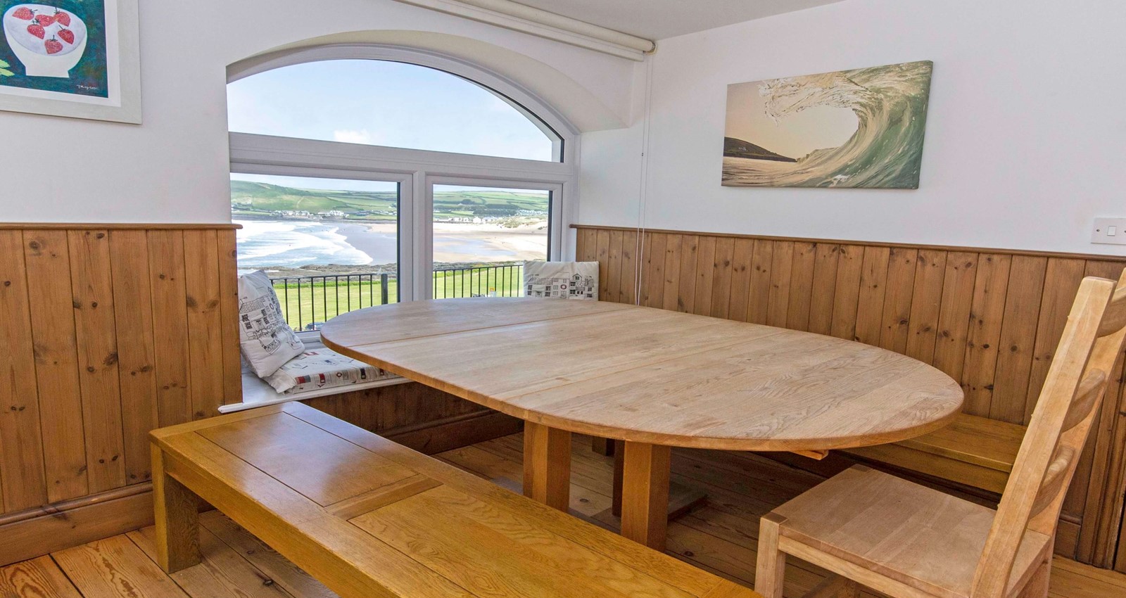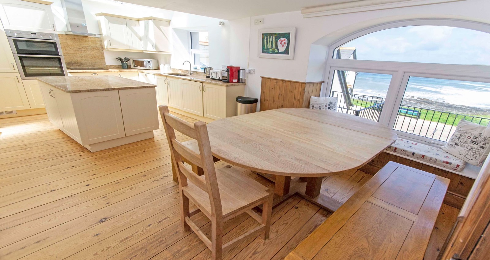 The views both from inside and the terrace are just amazing, location is brilliant 2 minutes from the beach, and the house itself very comfortable. The wonderfully light kitchen dining area with great views is very well equipped; the sitting room a lovely place to watch the waves from the comfortable sofas. It is so quiet, being set back from the road, but close to everything you need. We had a brilliant time.