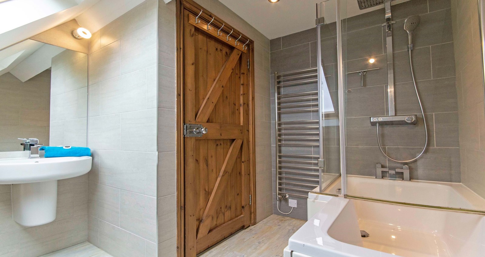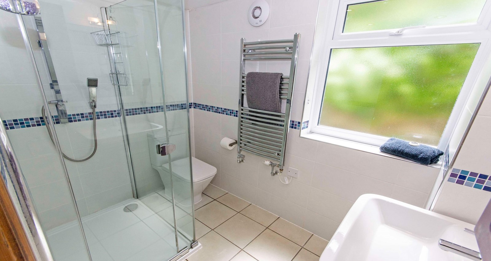 Large walk-in shower, W.C., washbasin, heated towel rail,