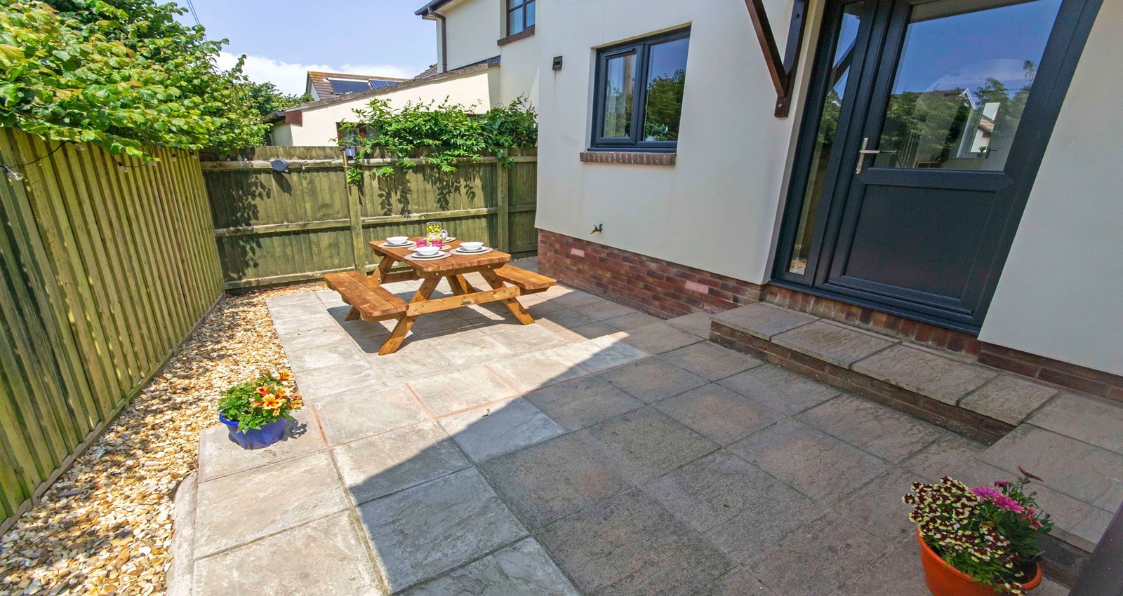 Garden furniture is provided for al fresco dining. Fully enclosed