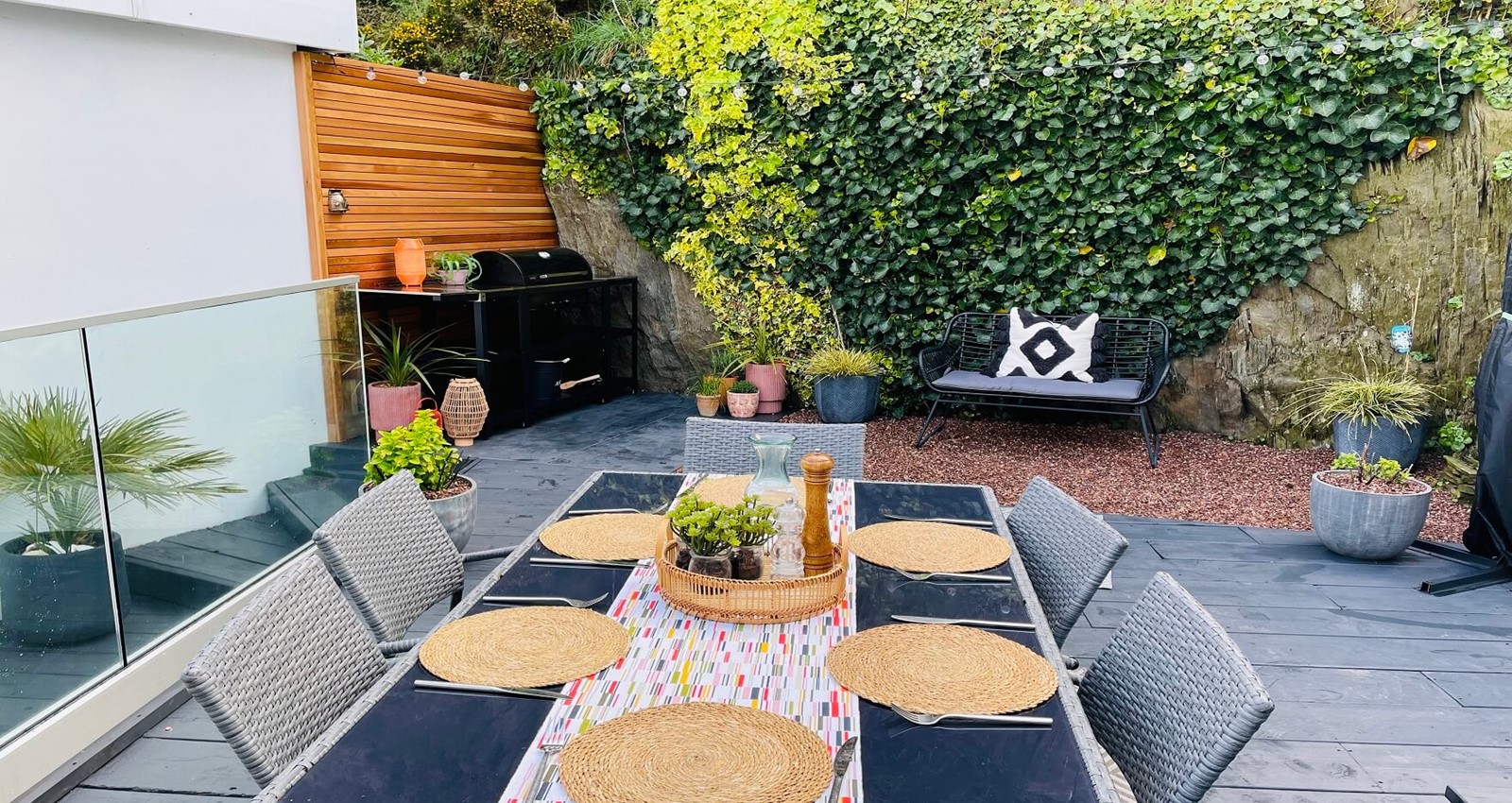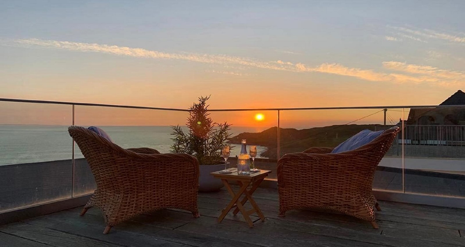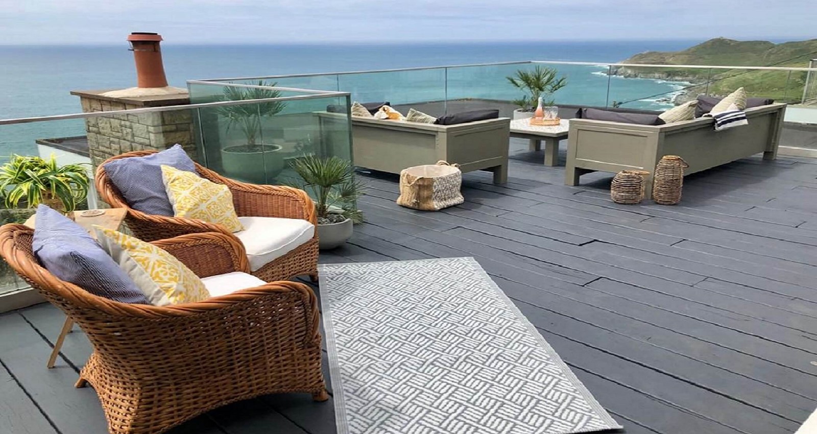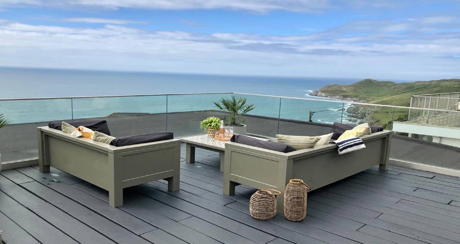 Rear sheltered decked courtyard carved into the rock face that is accessed off the dining area provides the perfect opportunity for sheltered BBQs. The wooden open plan stairs lead to the extensive roof terrace with glass balustrades that provide unrivalled panoramic sea views of Grunta beach and towards Woolacombe that are bound to take your breath away! there is even a private sunroom wooden shelter with heating and sliding doors for those evenings that are a little chilly!