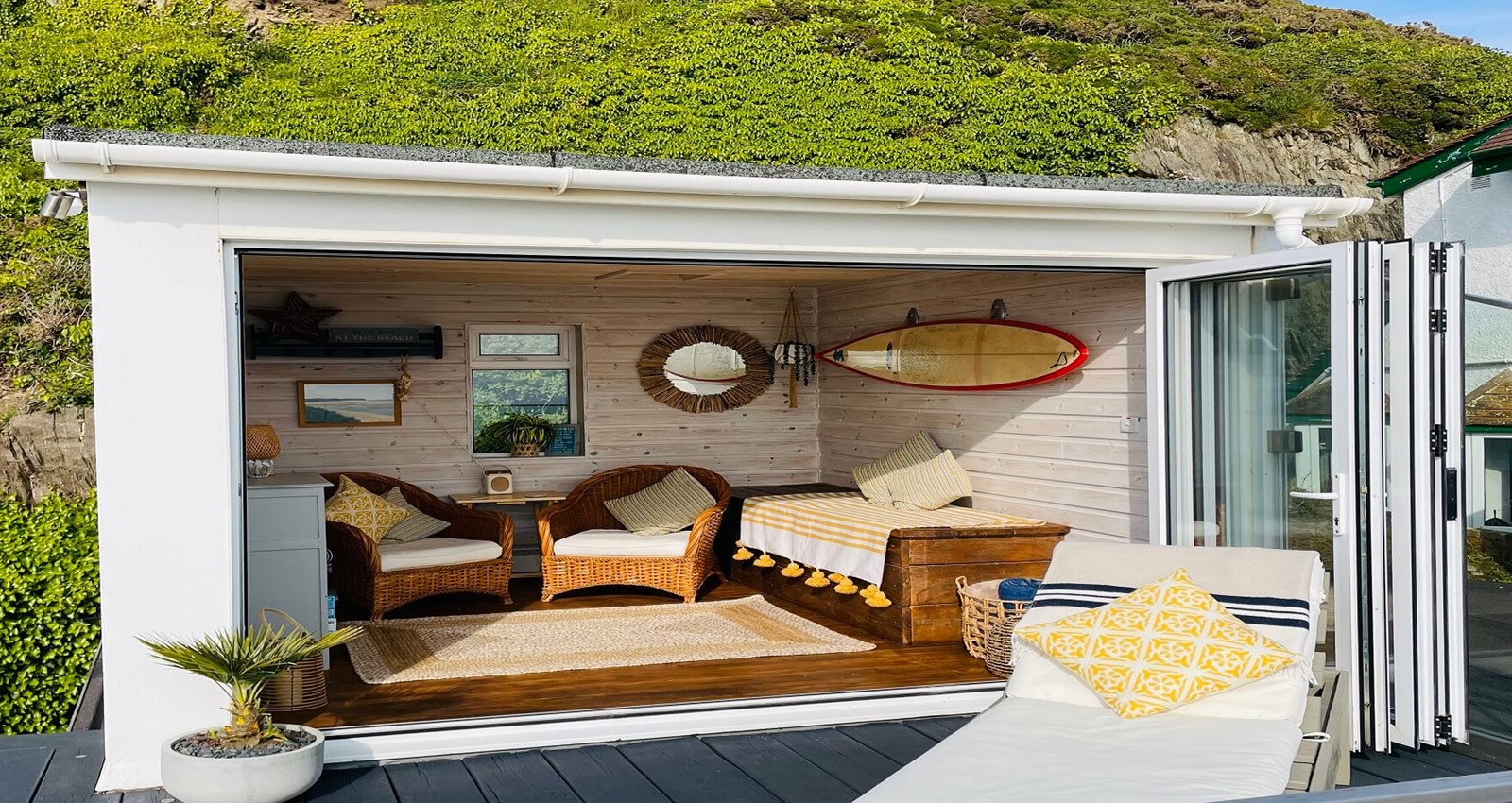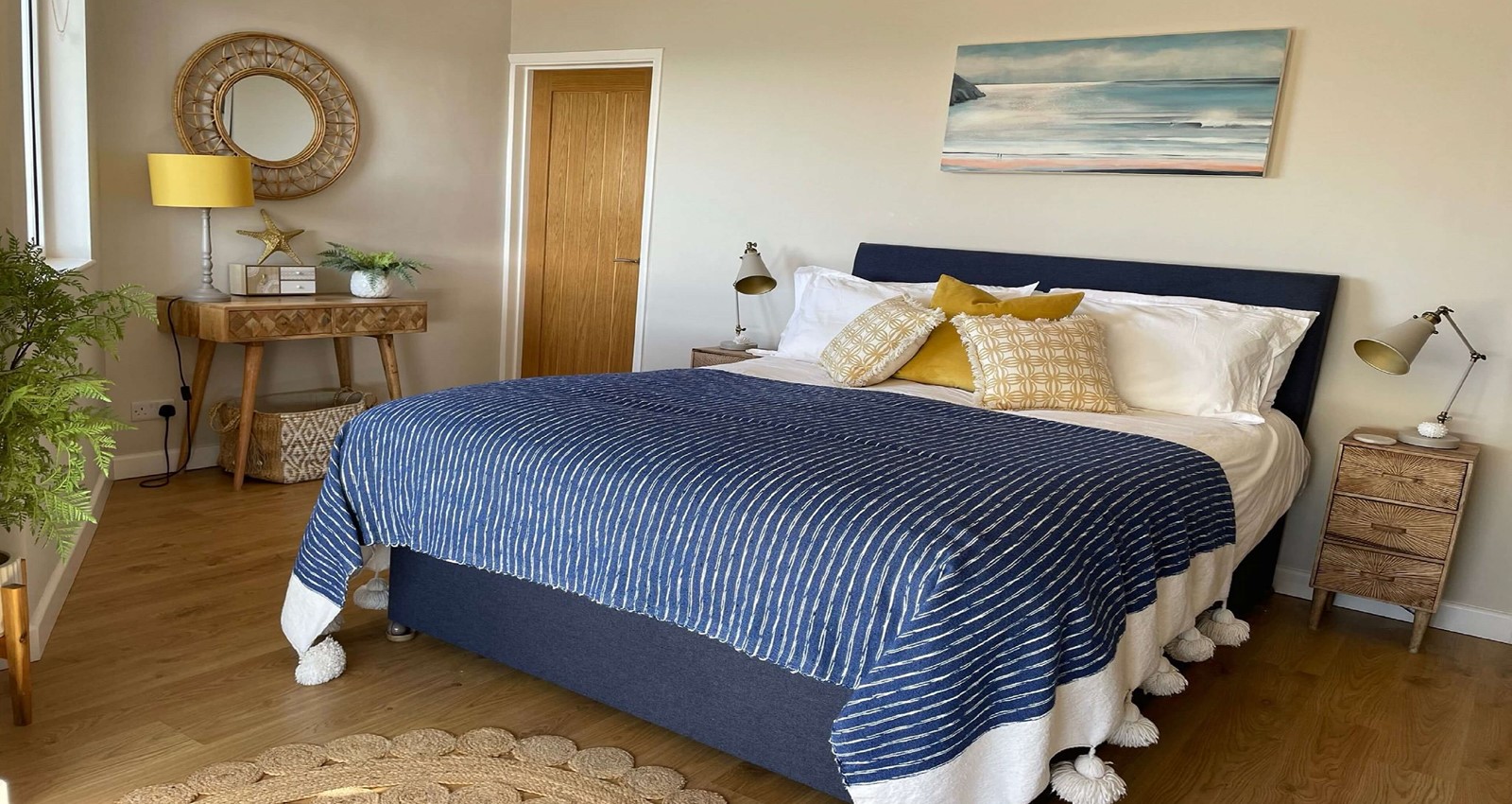 This coastal two bedroom bungalow has the benefit of two en-suite bathrooms and a family bathroom with shower and a lovely enclosed rear courtyard for more sheltered dining. Relax and unwind in the evening after a day exploring with use of the warming log burner or why not take a glass of something chilled up to the large roof terrace and enjoy watching the sunset over the beach nestled below.