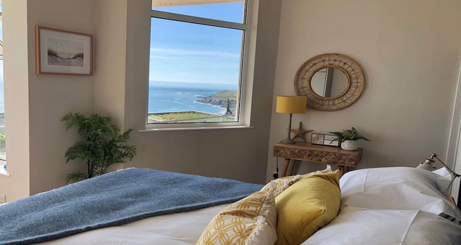 - Master Bedroom - Kingsize bed with spectacular sea views, bedside tables and an ensuite bathroom with a walk-in shower, wc and washbasin.